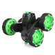 Radio-controlled car “Changer” 2-sided with light effects The car has 4 wheels Functions: movement forward and backward, left-right, around its axis in any direction, coups and driving on the back side, the wheels rotate around their axis. For operation you need: – for the machine a rechargeable battery “6.4V” (included) – for the control panel 2 batteries “AA” (included)