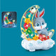 Colorful 3-D lights, swirls, and music, 360 revolve.